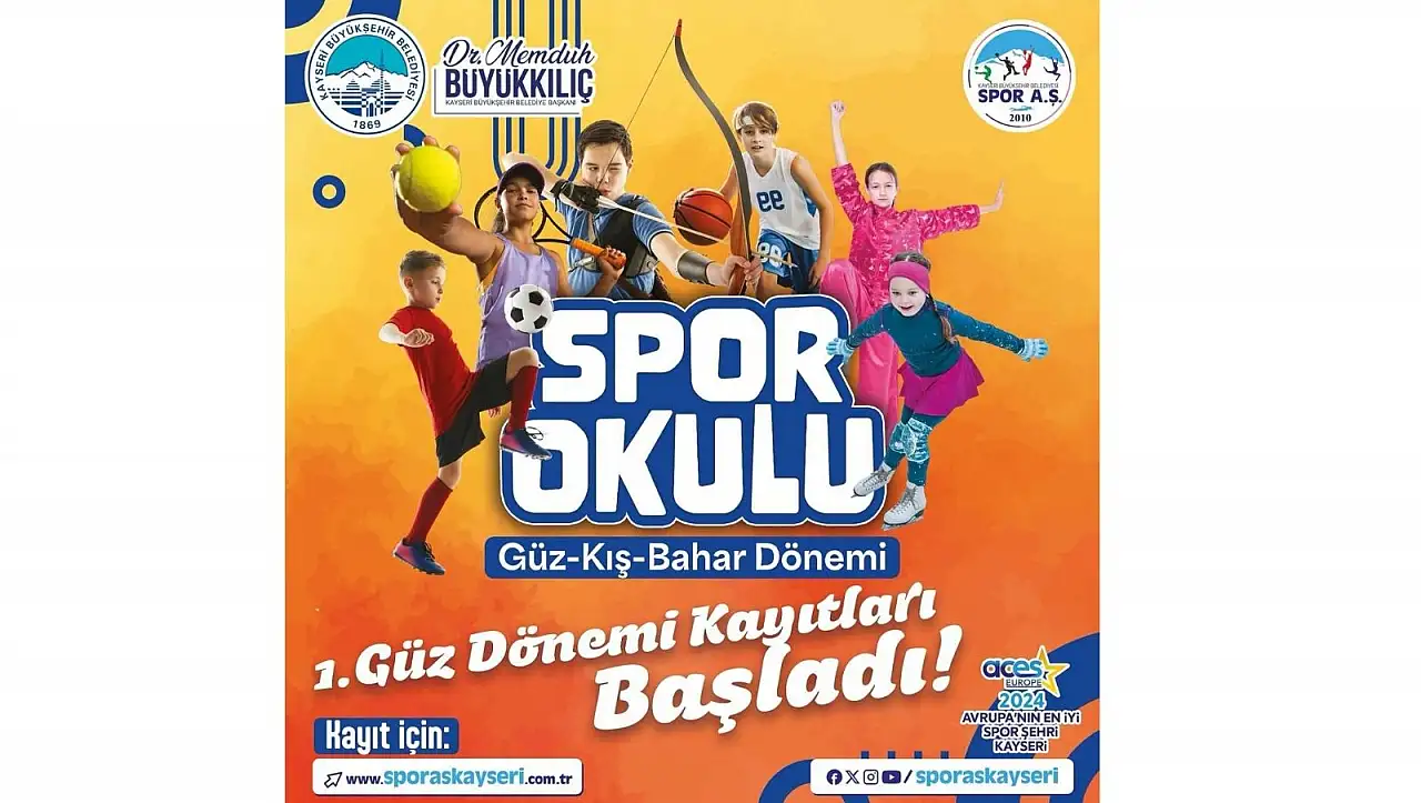 Altın Bayrak ödüllü ACES Avrupa Spor Şehri Kayseri, Büyükşehir Belediye Başkanı Dr. Memduh Büyükkılıç’ın sporun ve sporcunun dostu hizmet vizyonu doğrultusunda çalışmalarını sürdürüyor. Büyükşehir Belediyesi Spor A.Ş. tarafından yılın her dönemi kesintisiz şekilde düzenlenen Spor Okulları’nın 1. Güz Dönemi için kayıtları başlarken 1.Güz Dönemi kursları 30 Eylül 2025’te başlayıp 2 Kasım 2025’te sona erecek. Spor A.Ş.’nin uzman eğitmenlerince 15 spor tesisinde yürütülecek eğitimlerde; futboldan basketbola, okçuluktan tenise, yüzmeden kick boksa kadar toplam 15 farklı branşta kurslar planlandı.