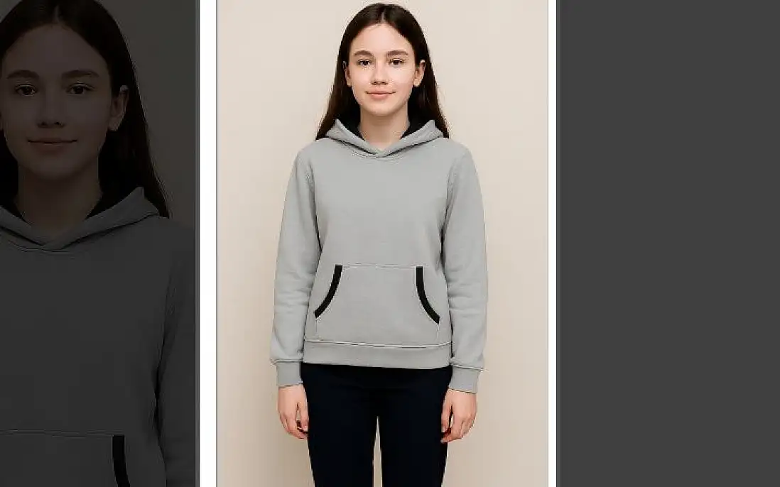 Gri Renk Kapüşonlu Sweatshirt (üzerinde herhangi bir desen, amblem, yazı vb. olmayacaktır.)