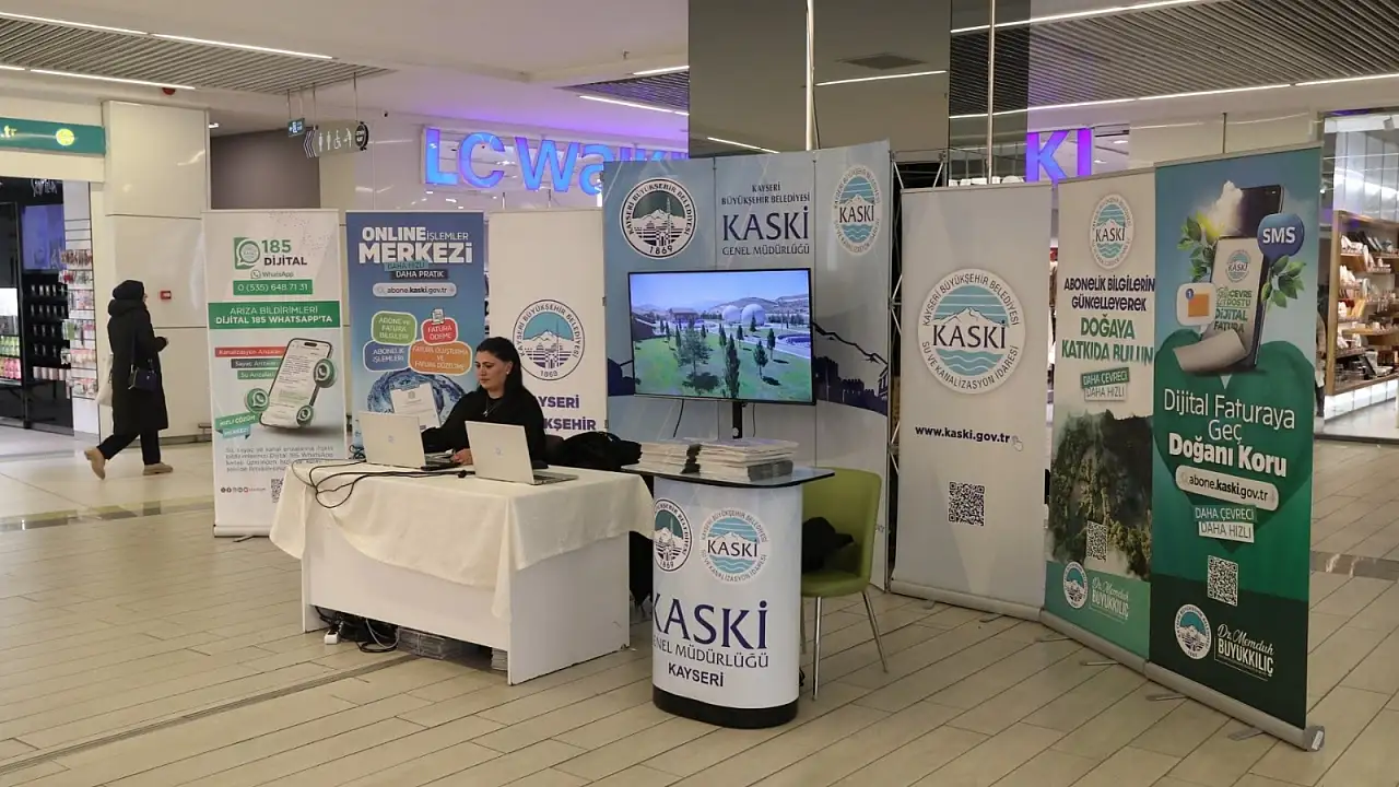 Kayseri Büyükşehir Belediyesi Su ve Kanalizasyon İdaresi (KASKİ) Genel Müdürlüğü, abone verilerinin güncellenmesi amacıyla vatandaşlarla Kayseri Park Alışveriş Merkezi’nde stant kurarak abonelerine yerinde hizmet sunuyor.
