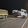 Kayseri'de ilginç görüntüler! Patates yüklü tır makasladı