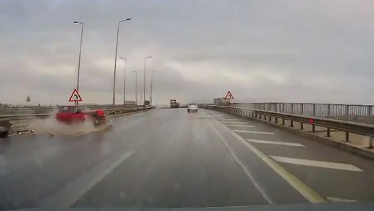 Kayseri’nin Boğazköprü mevkiinde maddi hasarlı kaza meydana geldi. Araç sahibi bariyerlere çarparak durabildi. O anları bir vatandaş araç kamerası ile saniye saniye kaydetti.