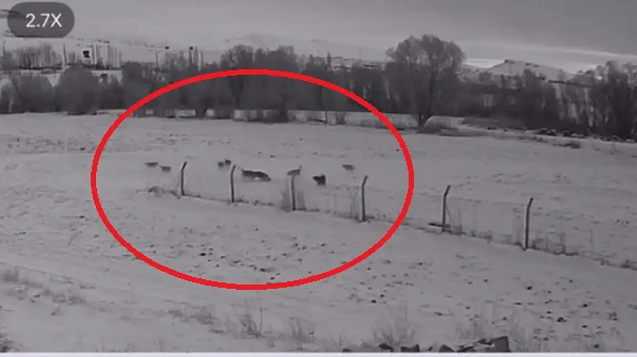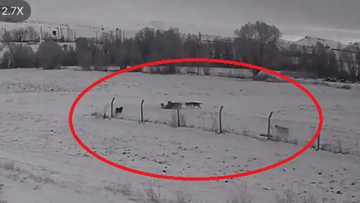 Kayseri’nin Pınarbaşı ilçesinde kurt sürüsünün saldırdığı köpek öldü. Olay anı güvenlik kamerasına yansıdı.
