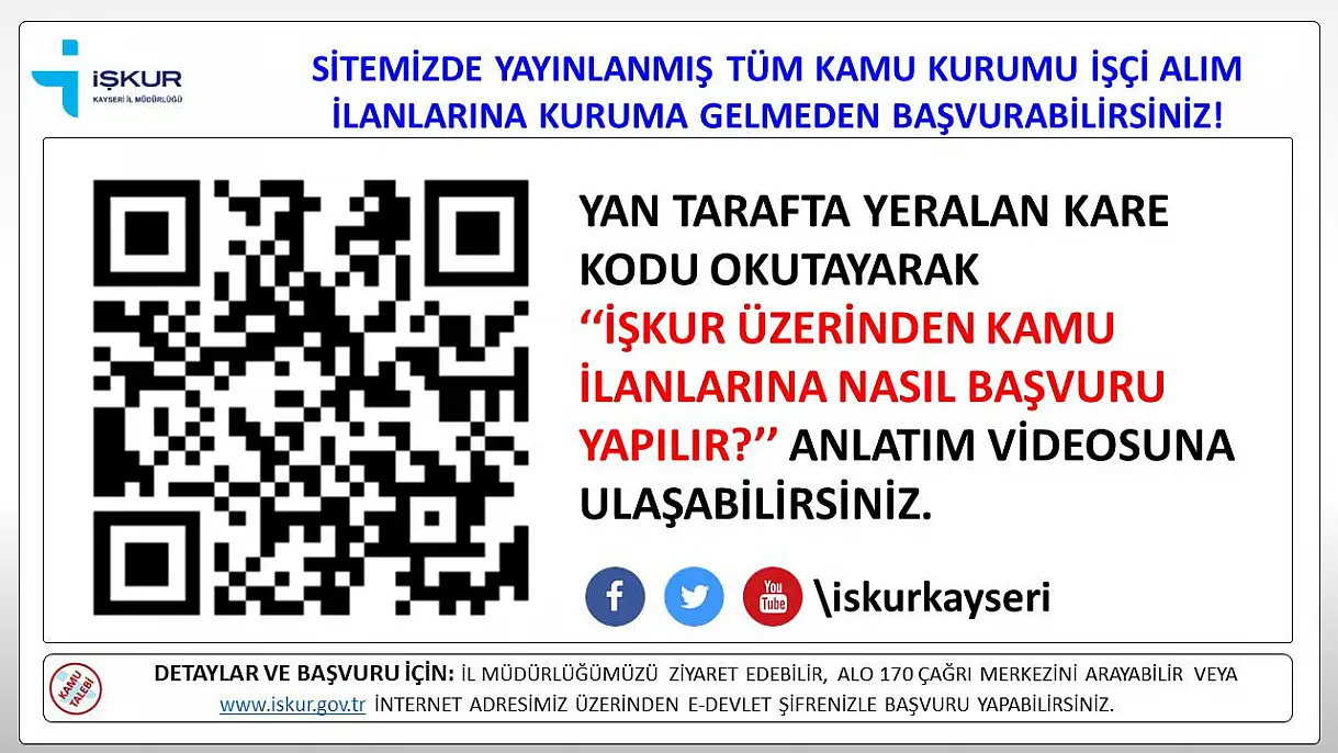 Haberler İş İlanları Kayseri'de Milli Savunma Bakanlığı daimi işçi alımı yapacak: İşte şartlar ve detayları... Kayseri'de Milli Savunma Bakanlığı daimi işçi alımı yapacak: İşte şartlar ve detayları... Milli Savunma Bakanlığı tarafından yapılacak olan işçi alımına ilişkin duyuruyu Kayseri İŞKUR İl Müdürlüğü yaptı. Detaylar Kayseri Anadolu Haber'de... işkur PAYLAŞ 25.02.2025 00:18 Güncelleme: 25.02.2025 00:18 Muhammed KösedağMuhabir TAKİP ET 7 7 PAYLAŞ Başvuru yapmakta zorluk yaşayan adaylar QR kodu okutarak kolaylıkla başvuru sürecini inceleyebilecek ve buna göre başvuru yapabilecek.