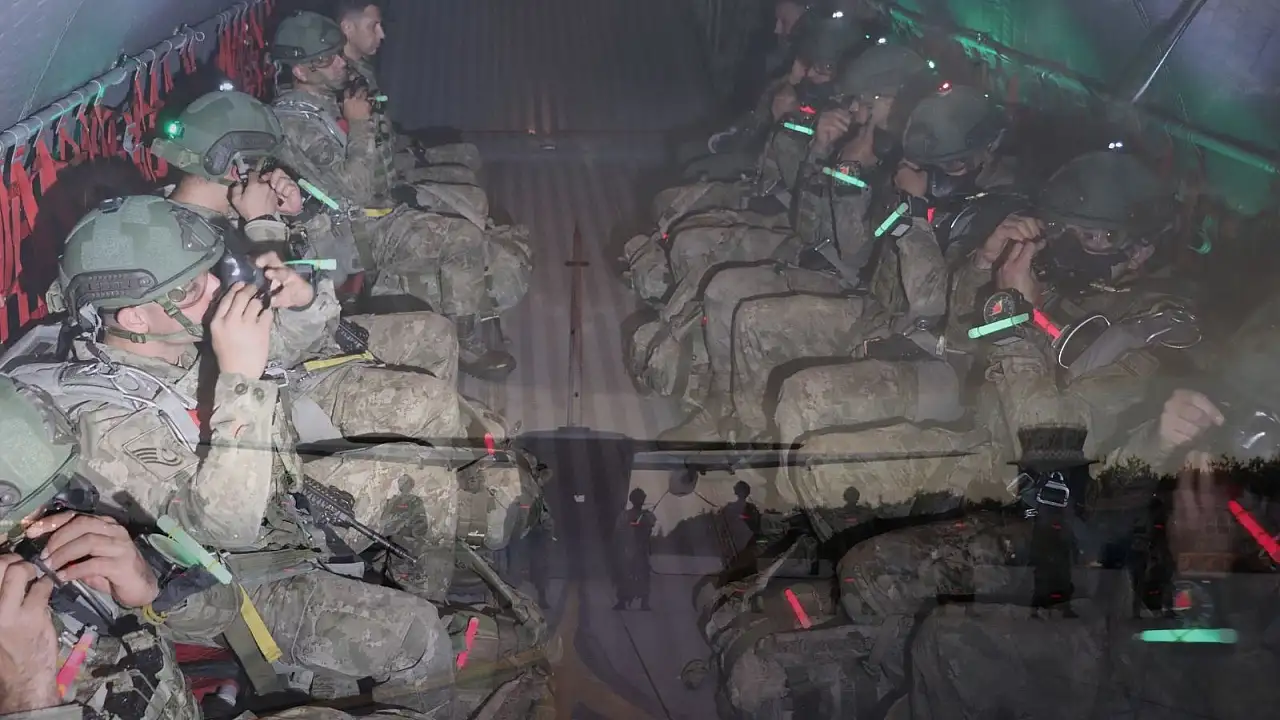 1. Komando Tugayı tarafından düzenlenen Erciyes-2025 Tatbikatı'nın seçkin gözlemci günü, paraşütçü komandoların gece atlayışı ile başladı.