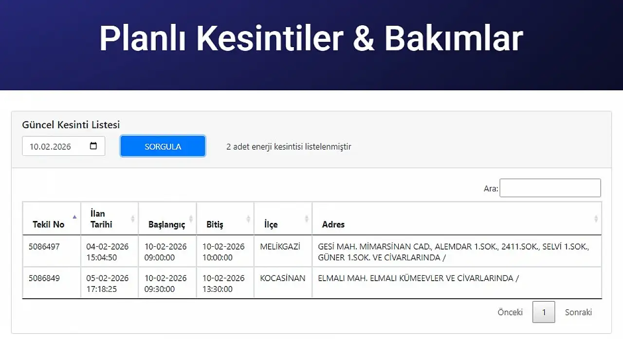 Kayseri'de o mahalleler için elektrik kesintisi uyarısı verildi! 10 Şubat 2026