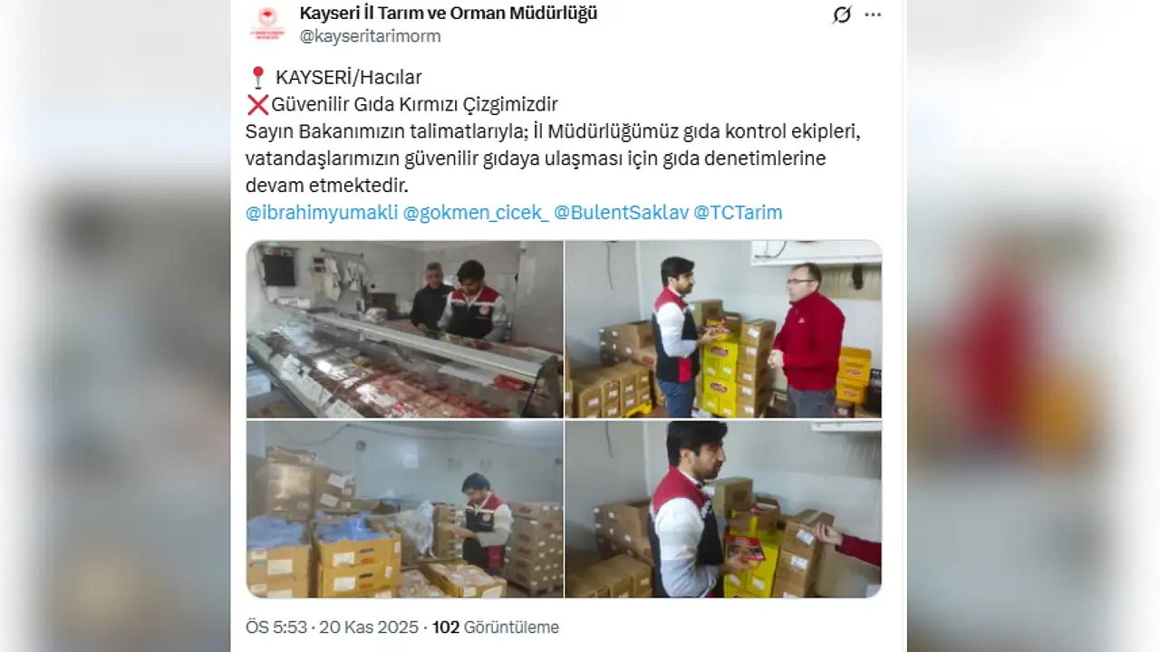Kayseri İl Tarım ve Orman Müdürlüğü son günlerde ülke genelinde yaşanan zehirlenme vakalarının ardından kentte denetimlerini arttı. Son 24 saat içerisinde gerçekleştirilen denetimlere ilişkin kareler Kayseri Tarım ve Orman İl Müdürlüğü sosyal medya hesabı üzerinden paylaşıldı.