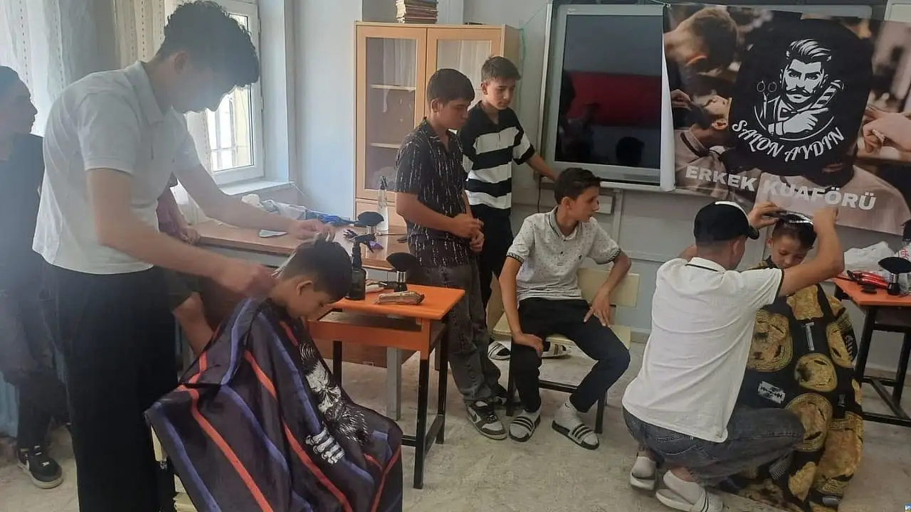 Dadaloğlu Mahallesi’nde Muhtar Ömer Yılmaz öncülüğünde, hayırsever iş insanı Muhammed Cengiz’in destekleriyle mahalleye berberler getirildi. Okul binasında kurulan düzenek sayesinde tüm öğrenciler ücretsiz tıraş edilerek yeni eğitim yılına hazır hale geldi.