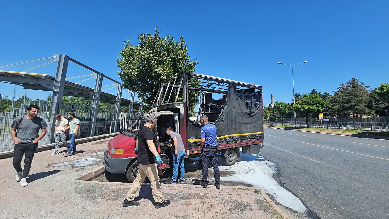 Kayseri'de park halindeki kamyonet aniden alev aldı!