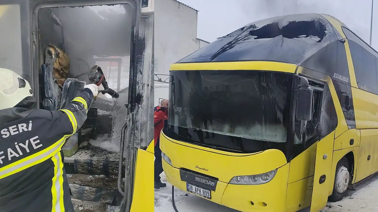 Melikgazi ilçesi Anbar Mahallesi'nde meydana gelen olayda, park halindeki otobüsün motor kısmı henüz bilinmeyen bir nedenle alev aldı. Kısa sürede büyüyen alevler aracın bir bölümünü kapladı. Çevredekilerin ihbarıyla olay yerine polis ve itfaiye ekipleri sevk edildi. Olay yerine gelen itfaiye ekipleri yangını kısa sürede söndürdü. Polis, olayla ilgili inceleme başlattı.