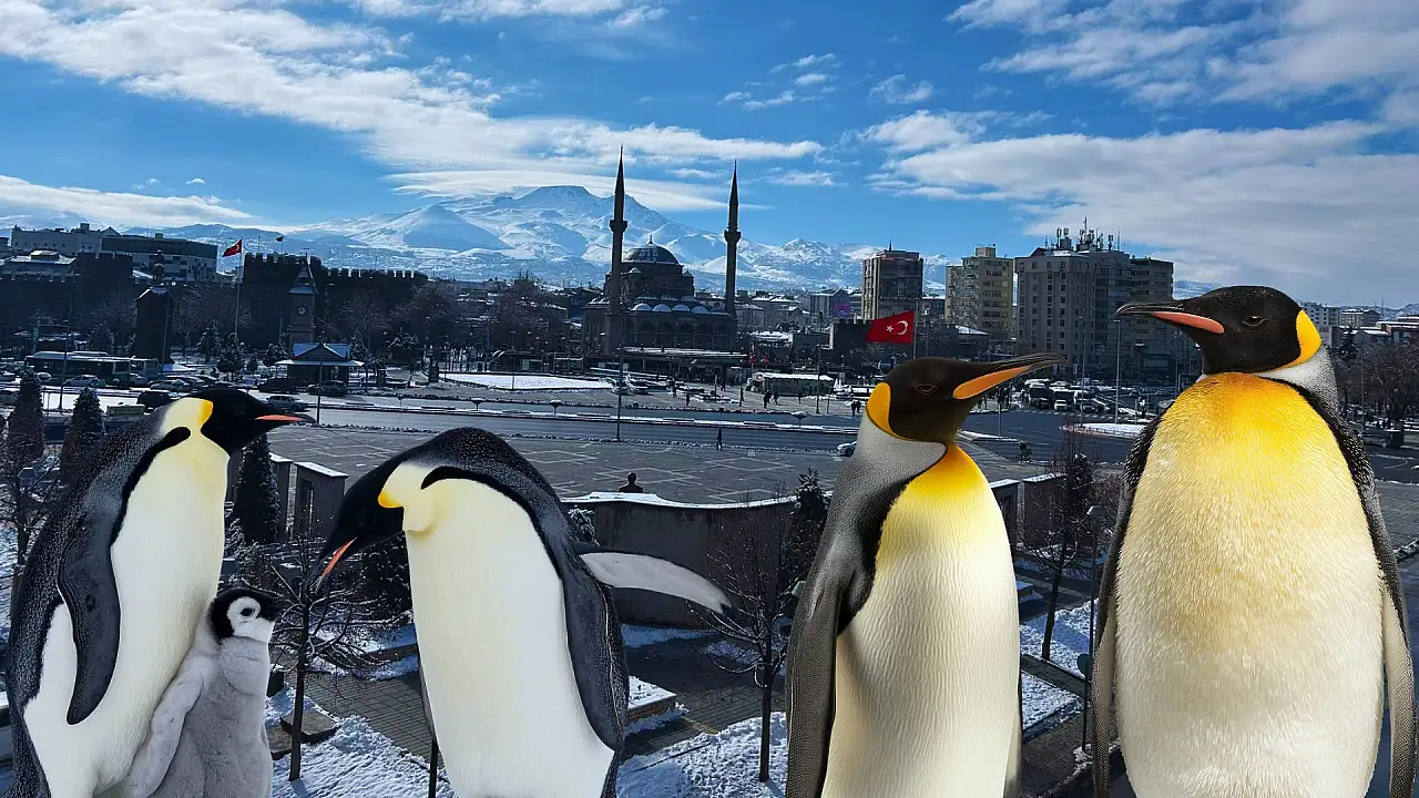 Kayseri'de penguenler gezintiye çıktı: Paylaşımlar arka arkaya geldi!