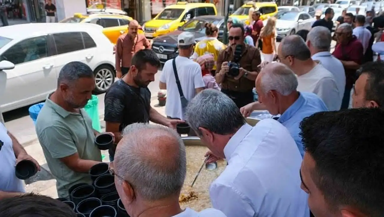 Lokantacılar ve Pastacılar Odası Başkanı Altan Aydemir, vatandaşlara aşure ikramında bulundu.