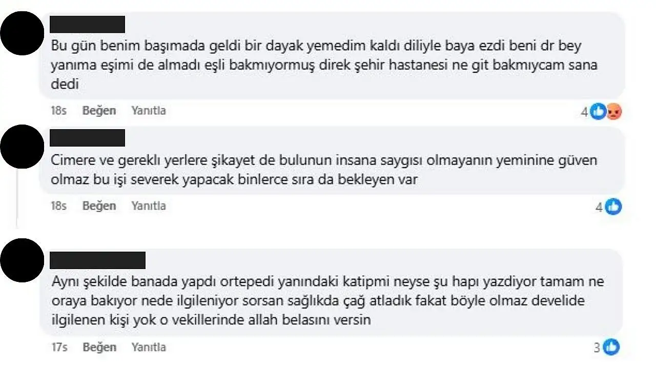 Paylaşımın altına yapılan yorumlarda, farklı hastanelerde benzer sorunlar yaşadığını belirten çok sayıda vatandaş yer aldı. Bu durum, dile getirilen şikâyetlerin tek bir kişiye ait olmadığına ve sağlık hizmetlerinin işleyişine dair daha geniş bir soruna işaret etti.