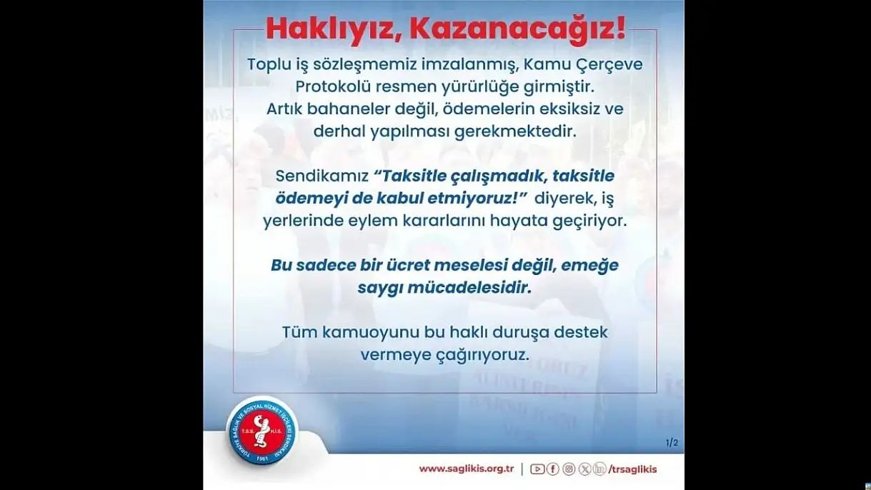 Cumhurbaşkanı, Çalışma Bakanı ve Hazine Bakanı’na seslenen Salcanlıer, ‘‘Bu adaletsizlik artık tahammül edilemez boyuta ulaştı. Sağlık işçilerini yok saymaya son verin, alın terimizin karşılığını derhal ödeyin’‘ dedi.