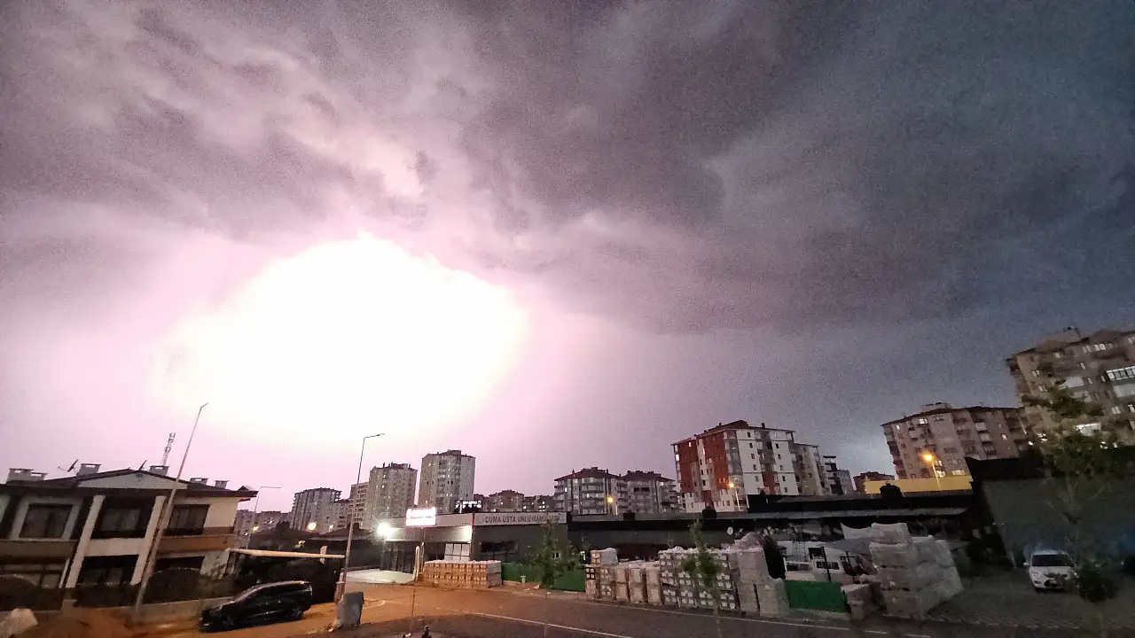 Kayseri’de akşam saatlerinde art arda çakan şimşekler geceyi aydınlattı.