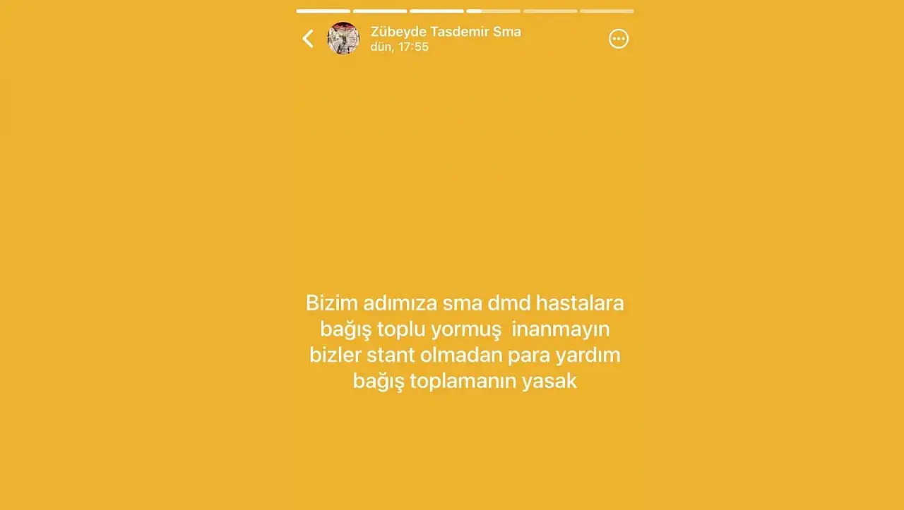 Kayseri'de SMA TİP-1 ölümcül kas hastalığı mücadelesi veren Alya Taşdemir'in babaannesi Zübeyde Taşdemir sosyal medya hesabından paylaşım yaparak, Ahmet Koç isimli şahsın Kayseri’de SMA ve DMD bebeklerin ismini kullanarak bağış topladığını iddia etti. Taşdemir paylaşımında, ‘Bizim adımıza SMA ve DMD hastalarına bağış topluyormuş. İnanmayın bizlerin stant olmadan para toplamamız, yardım toplamamız yasak’ ifadelerinde bulundu.