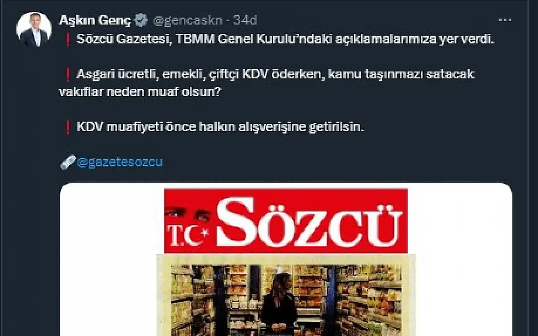 Haberler Güncel Kayseri'de sosyal medya hesaplarında neler paylaşıldı? İşte yetkililerin gündemi! Kayseri'de sosyal medya hesaplarında neler paylaşıldı? İşte yetkililerin gündemi! Kayseri'de 22 Temmuz Salı günü öne çıkan sosyal medya paylaşımların sizler için derledik. Detaylar haberimizde... kayseri PAYLAŞ 22.07.2025 16:14 Güncelleme: 22.07.2025 16:14 Hilal TekeoğluMuhabir TAKİP ET 5 8 PAYLAŞ CHP Kayseri Milletvekili Aşkın GençKayserili vekil Genç, KDV muafiyetine ilişkin sözlerine yer veren medya şirketlerini paylaşarak konuya ilişkin tepkisini ortaya koydu.