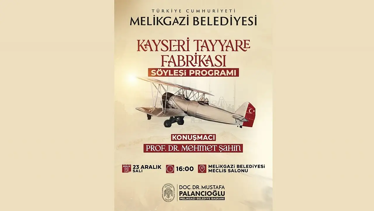 Melikgazi Belediyesi tarafından düzenlenecek Kayseri Tayyare Fabrikası söyleşisine tüm Kayserililer davet edildi.