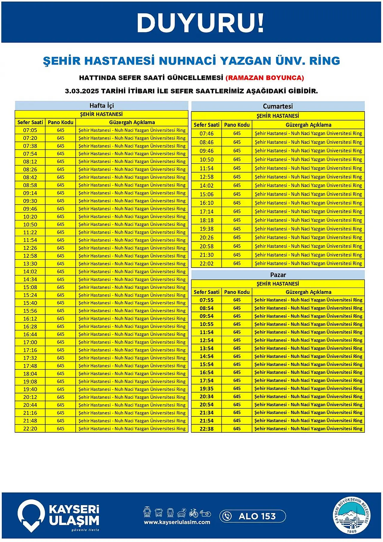 - Kayseri'de toplu taşımada Ramazan ayı düzenlemesi yapıldı: Güzergahlar ve sefer saatleri değişti!