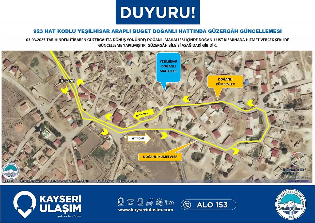 Yeşilhisar Araplı Buget Doğanlı Hattında Güzergâh Güncellemesi
