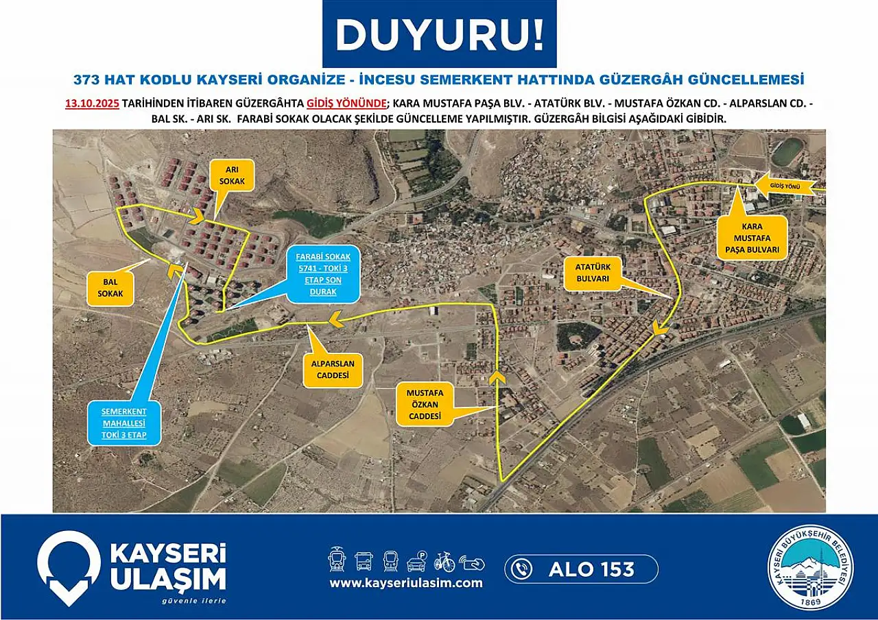 373 Hat Kodlu Kayseri Organize - İncesu Semerkent Hattında Güzergâh Güncellemesi