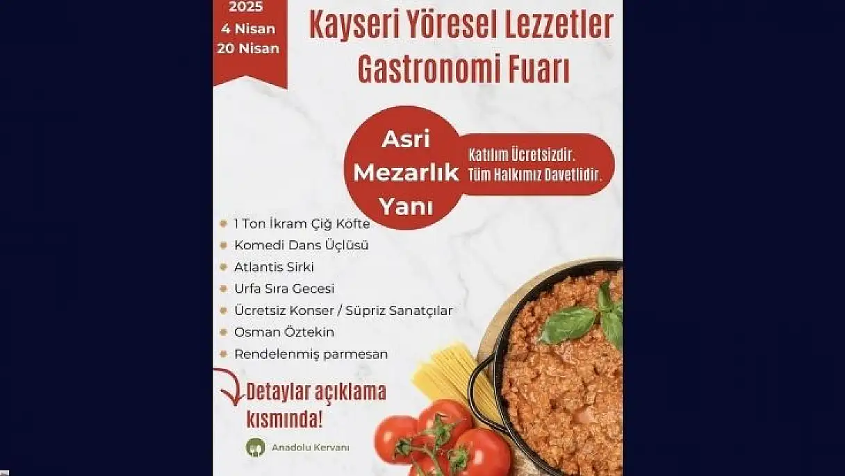 Kayseri'de ücretsiz lezzet şöleni: Yöresel gastronomi fuarı başlıyor!