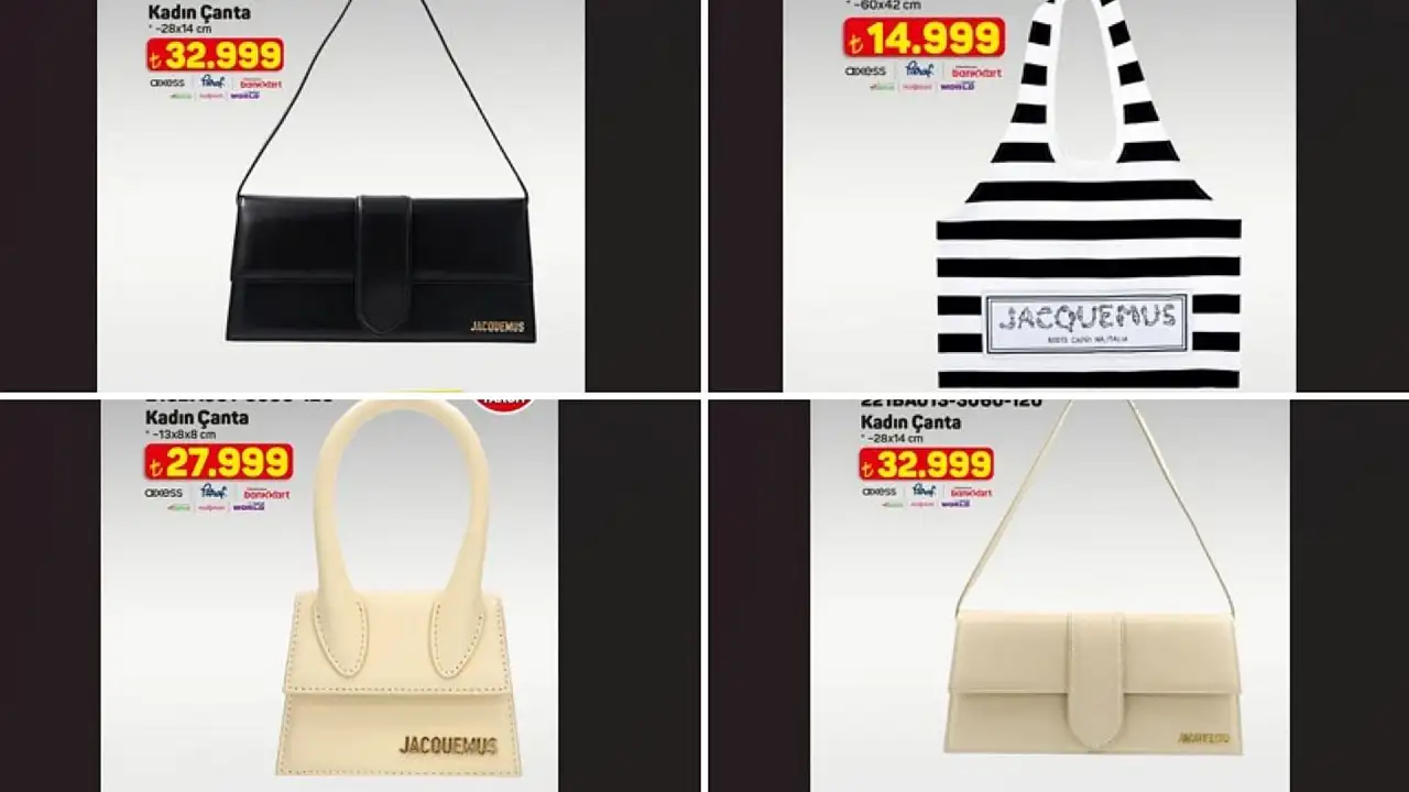 Marketin ucuzluk politikası sürekli vurgulanmasına rağmen, ürünler arasında lüks segmentte yer alan pahalı çantaların bulunması görenleri şaşırttı. 32 bin 999 TL, 27 bin 999 TL ve 14 bin 999 TL gibi yüksek fiyatlarla satışa sunulan kadın çantaları, fiyatlarıyla özellikle alışveriş yapanların ilgisini çekti.