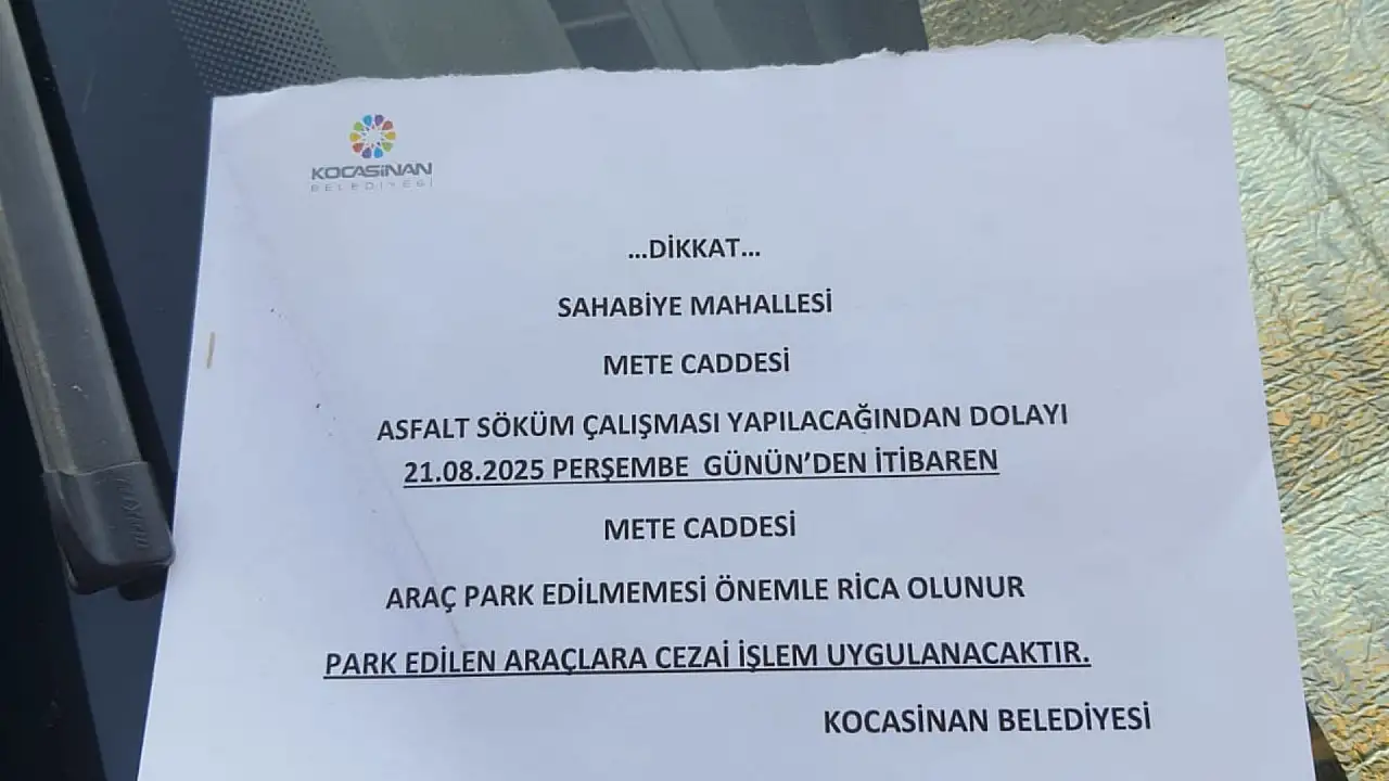 Kocasinan Belediyesi asfalt çalışması nedeniyle Mete caddesi üzerine araç parkının yasak olduğunu, park edenlere cezai işlem yapılacağını duyurdu.