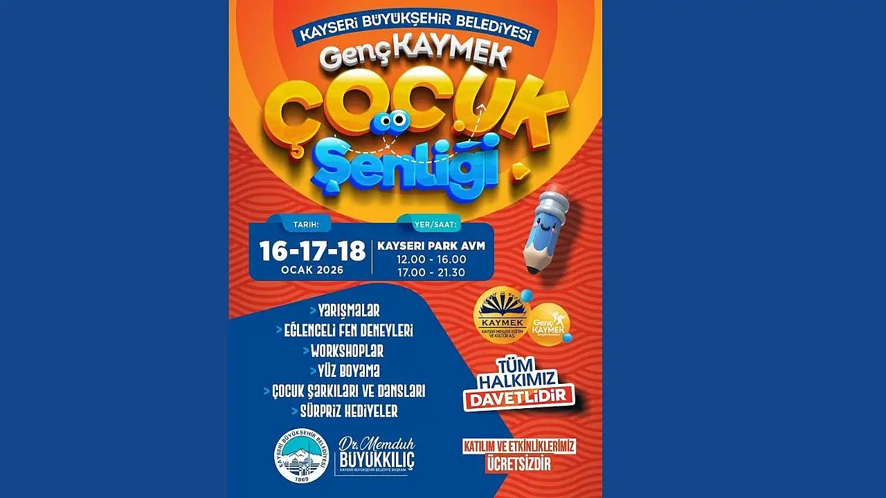 Eğitim hizmetlerinin yanı sıra sosyal, sanatsal ve kültürel etkinlikler, geziler, farkındalık projeleri, seminerler ve yarışmalarla birçok gencin geleceğine imza atan Büyükşehir Belediyesi bünyesindeki Genç KAYMEK, 16 Ocak 2026 Cuma günü saat 15.00’te Kayseri Park AVM -1. katında açılışı gerçekleşmek üzere saat 12.00-21.30 arasında 16, 17 ve 18 Ocak 2026 tarihlerinde 3 gün sürecek etkinliklere imza atıyor.