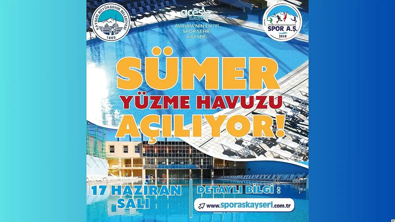 Kent halkının yoğun ilgi gösterdiği ve açılışını büyük merakla beklediği, Kayseri’nin merkezinde bulunan, Sümer Yüzme Havuzu 17 Haziran Salı günü yeniden hizmet vermeye başlıyor. Aylardır merakla beklenen açılış, yaz sıcaklarında serinlemek isteyen vatandaşlar tarafından sıklıkla tercih ediliyor.
