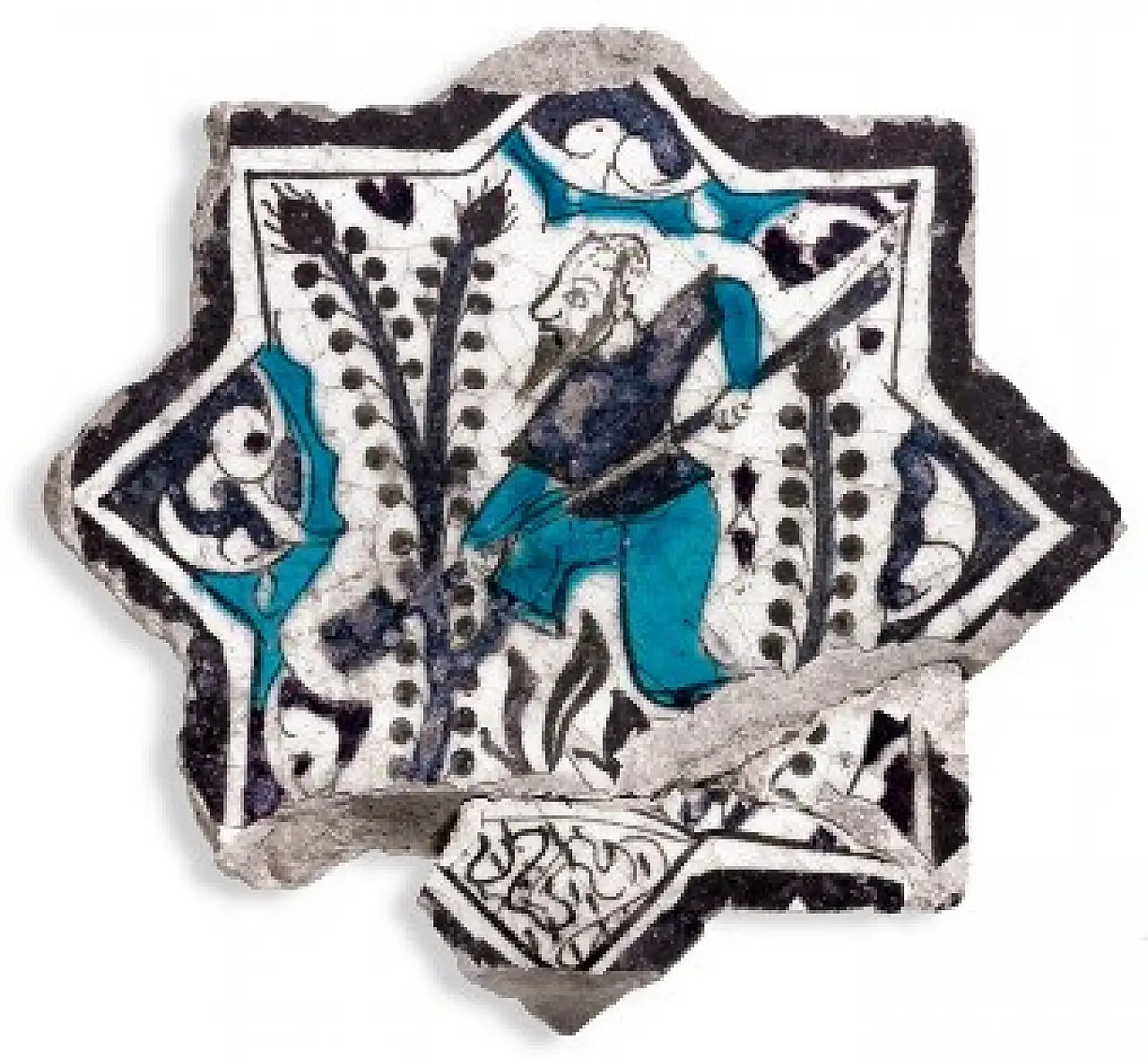 Sarayın kalıntılarında, sır altı tekniğiyle yapılmış olan ve 20 cm çapında sekiz kollu bir yıldız çini, Selçuklu dönemi çini sanatında şimdiye kadar nadiren karşılaşılan bir kompozisyon sunuyor. Figür, büyük bir dikkatle tasvir edilmiş, gerçekçi şekilde çizilen el ve kol hareketleri, figürün toprağa küreğini saplarkenki hareketini başarıyla yansıtıyor. Dönemin genel sanatsal çizgilerinden farklı olarak, bu figürün fiziksel özellikleri, Selçuklu çini ve minyatürlerinde alışık olunan standartların dışına çıkıyor. Gözleri çekik olmayan, büyük burunlu ve güçlü yapılı bu figür, bir halk işçisini simgeliyor.