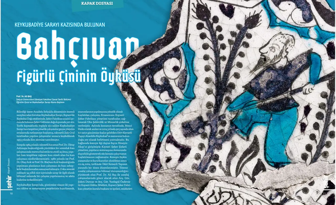 Şehir Kültür Sanat Dergisi’nin 2017 yılında ilk yayınında yer alan çok özel bir makalede, Keykubadiye Sarayı Kazısında Bulunan Bahçıvan Figürlü Çininin Öyküsü yer alıyor.