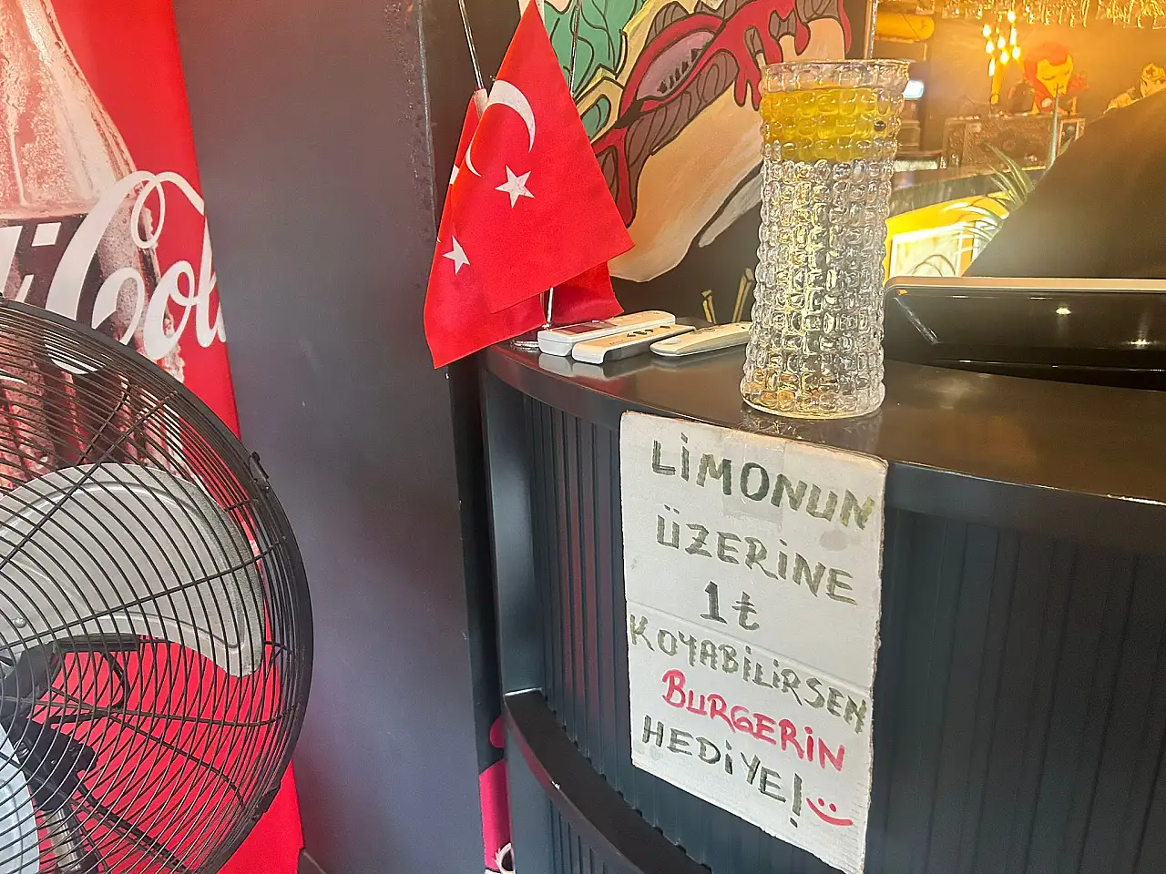 Kayseri Talas’ta hizmet veren Yebs Burger, dikkat çeken bir kampanyaya imza attı. İşletme, kasanın yanına su dolu bir vazo yerleştirerek üzerine bir adet limon koydu. Altına ise ‘Limonun üzerine 1 TL koyabilirsen burgerin hediye!’ yazarak bir meydan okuma yaptı.