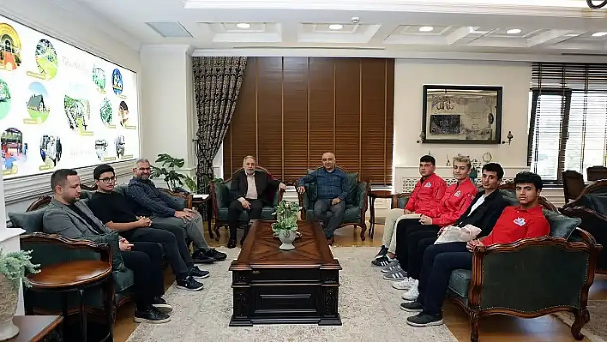 Talas Belediyesi Espor ve İnovasyon Merkezi’nde eğitim alan Hürriyet Mesleki ve Teknik Anadolu Lisesi öğrencileri, TEKNOFEST Kıbrıs’ta elde ettikleri başarıları paylaşmak ve teşekkürlerini iletmek üzere Talas Belediye Başkanı Mustafa Yalçın’ı makamında ziyaret etti.