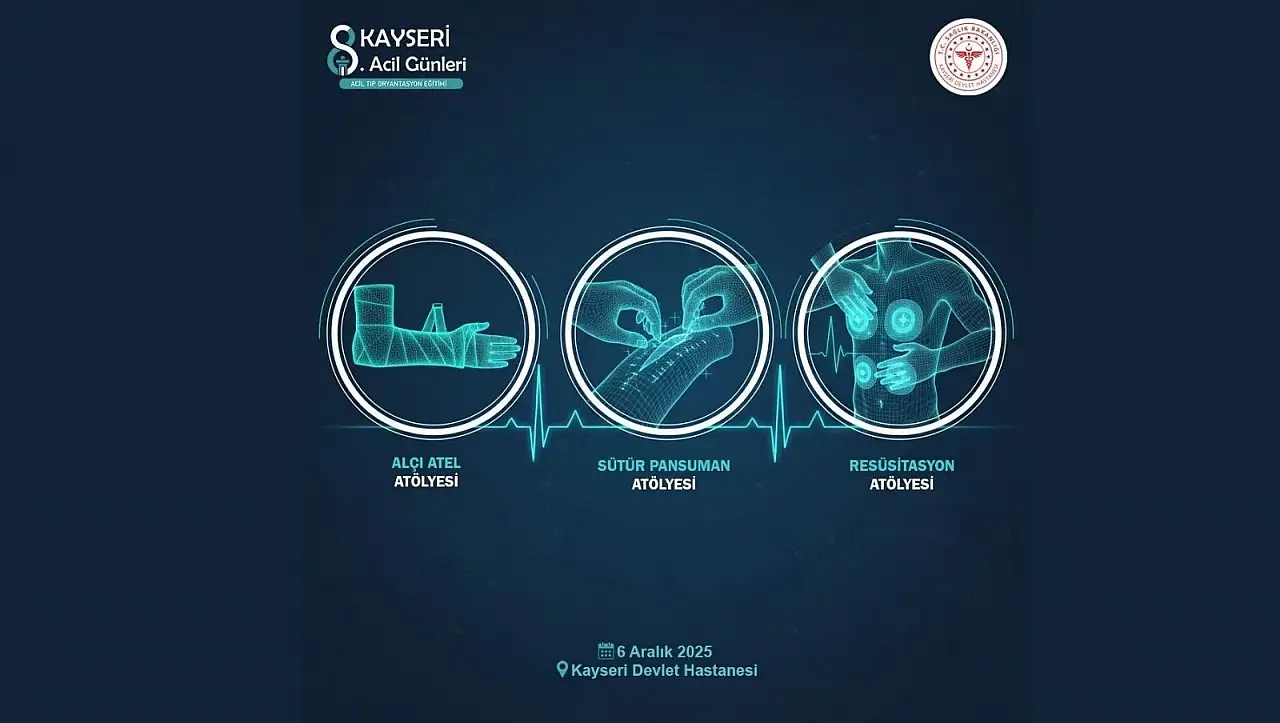 Kayseri Devlet Hastanesi, 6 Aralık 2025 tarihinde '8. Kayseri Acil Tıp Eğitim Günleri' etkinliğini düzenliyor. Etkinlikte acil tıbbın en kritik başlıkları ele alınacak. Detaylar Kayseri Anadolu Haber'de...