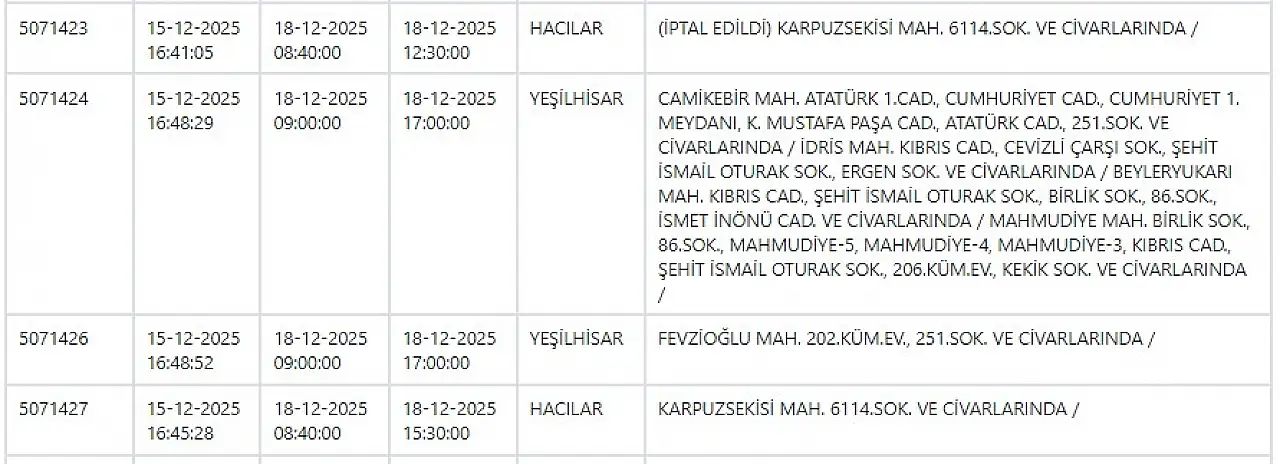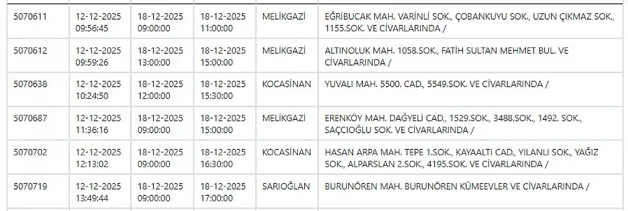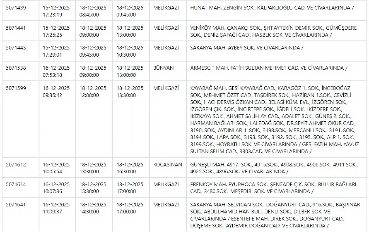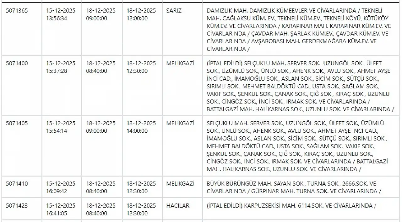 Kayseri'de yarın hangi mahallelerde elektrik kesintisi yaşanacak? - 18 Aralık 2025