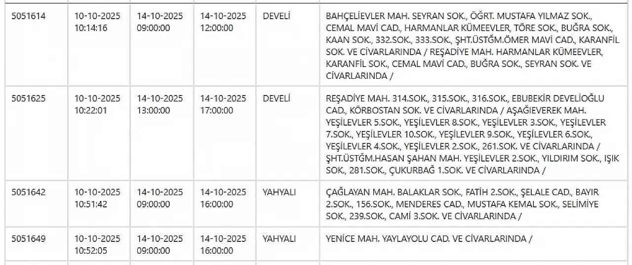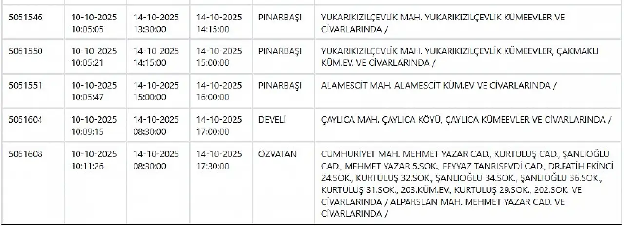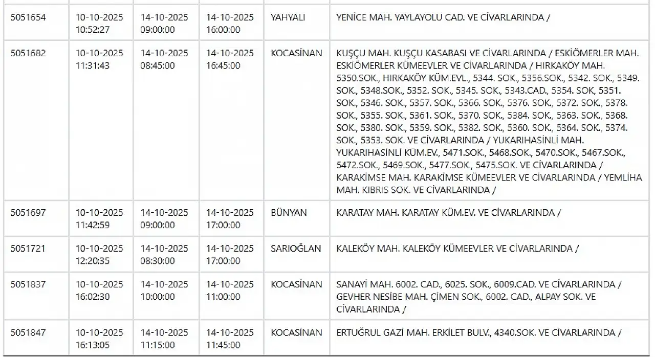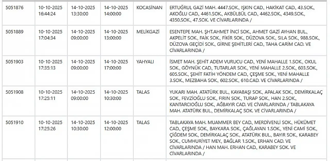 - Kayseri elektrik kesintisi güncellendi: Yeni saatler ve mahalle listesi! 14 Ekim 2025