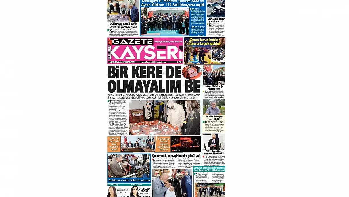 Gazete Kayseri Tarım Bakanlığı taklit ve tağşiş listesinde yer alan iki firmayı ‘Bir kere de olmayalım be’ başlığı ile manşetine taşıdı. Kayseri’de bulunan iki firmanın sucuğunda baş eti ve ısıl işlem görmüş tavuk eti tespit edildi.