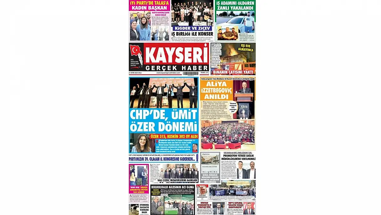 Gerçek Haber manşetinde ‘CHP’de Ümit Özer Dönemi’ başlığı ile Ümit Özer’in CHP 39. Olağan İl Kongresinde başkan seçilmesine yer verdi. Mevcut Başkan Feyzullah Keskin’in 302 oyda kaldığı ön plana çıkarılırken, Özer ve Keskin’in kol kola girerek birlik mesajı vermesi vurgulandı.