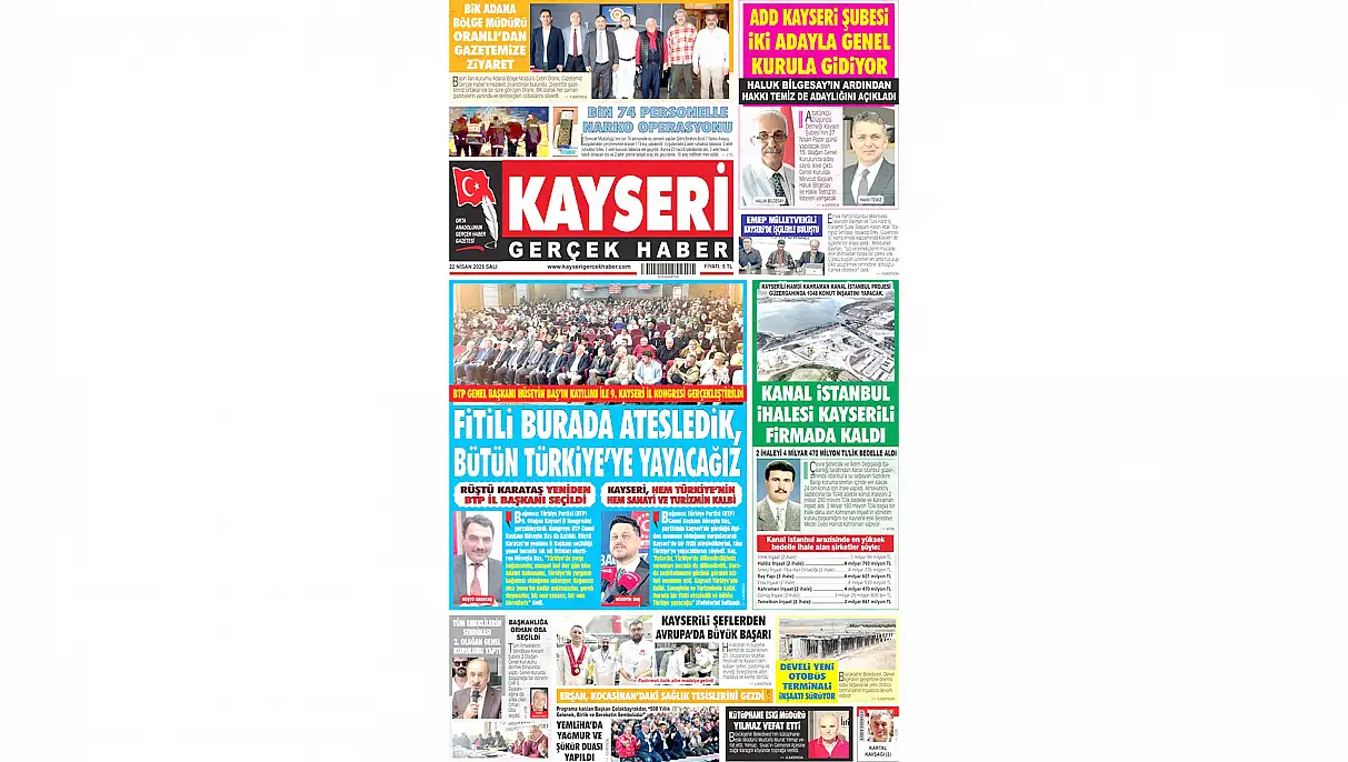 Gerçek Haber’in manşetinde Bağımsız Türkiye Partisi’ni (BTP) 9. Olağan Kayseri İl Kongresi yer aldı. ‘Fitili burada ateşledik bütün Türkiye’ye yayacağız’ başlığı ile gündeme gelen haberde Rüştü Karataş’ın yeniden il başkanı seçilmesi ön plana çıkartıldı. BTP Genel Başkanı Hüseyin Baş da katıldığı kongrede Kayseri’de gördüğü ilgiden memnun olduğunu dile getirerek, Kayseri’de yaktıkları fitili ateşlediklerini ve tüm Türkiye’ye yayacaklarını söyledi.