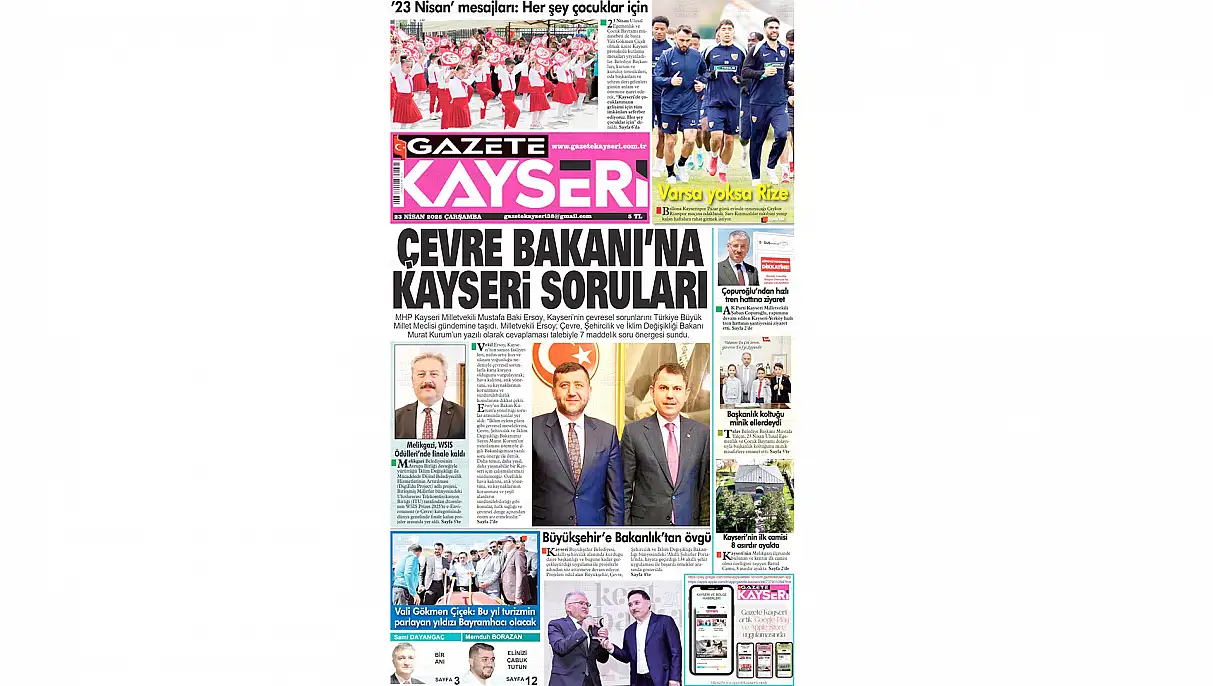 Gazete Kayseri’nin manşetinde Milliyetçi Hareket Partisi Kayseri Milletvekili Baki Ersoy’un Çevre, Şehircilik ve İklim Değişikliği Bakanı Murat Kurum’a 7 maddelik soru önergesi sunması yer aldı. Vekil Eroy'un ‘Sanayi faaliyetleri, nüfus artış hızı ve ulaşım yoğunluğu açısından önde gelen büyükşehirlerden biri olan Kayseri, özellikle hava kalitesi, atık yönetimi, su kaynaklarının korunması ve yeşil alanların sürdürülebilirliği gibi konularda halk sağlığı ve çevresel denge açısından kritik bir öneme sahip’ ifadeleri ön plana çıkarıldı.