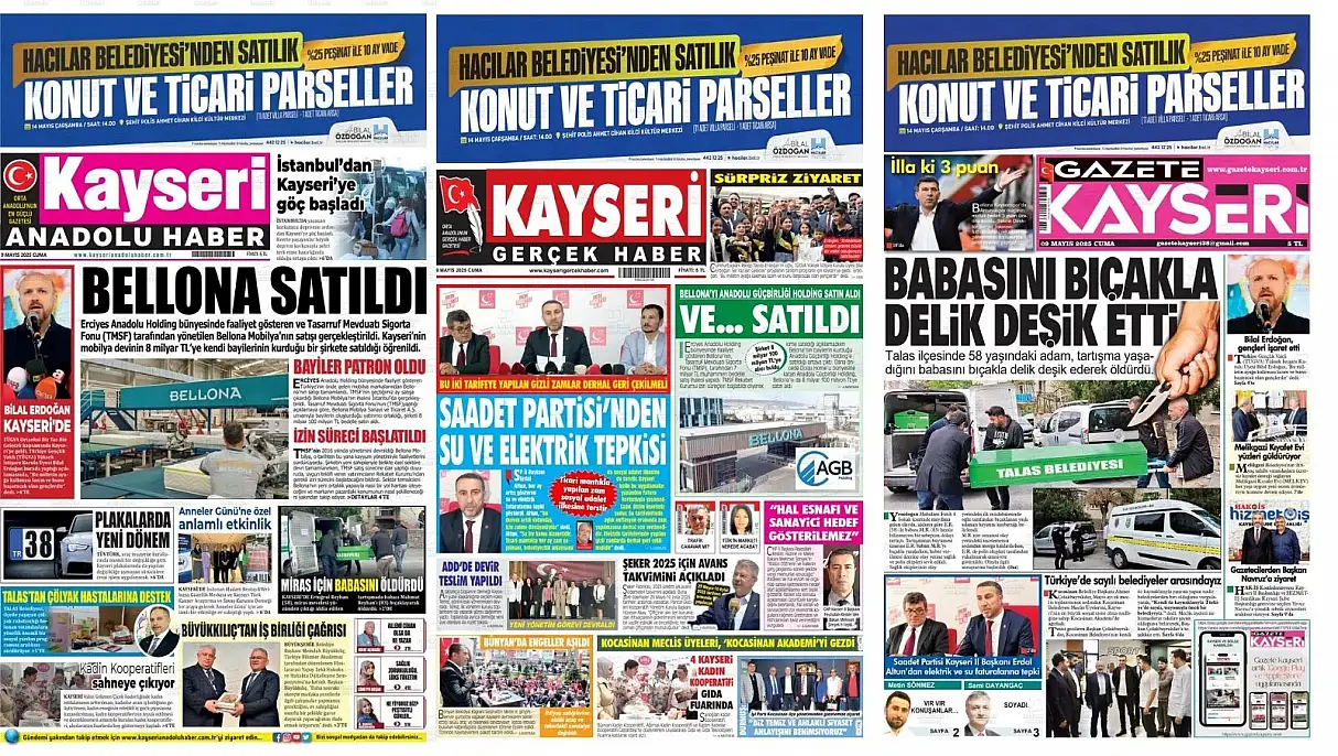 Kayseri yerel basında 9 Mayıs Cuma günü öne çıkan manşet haberlerini sizler için derledik.