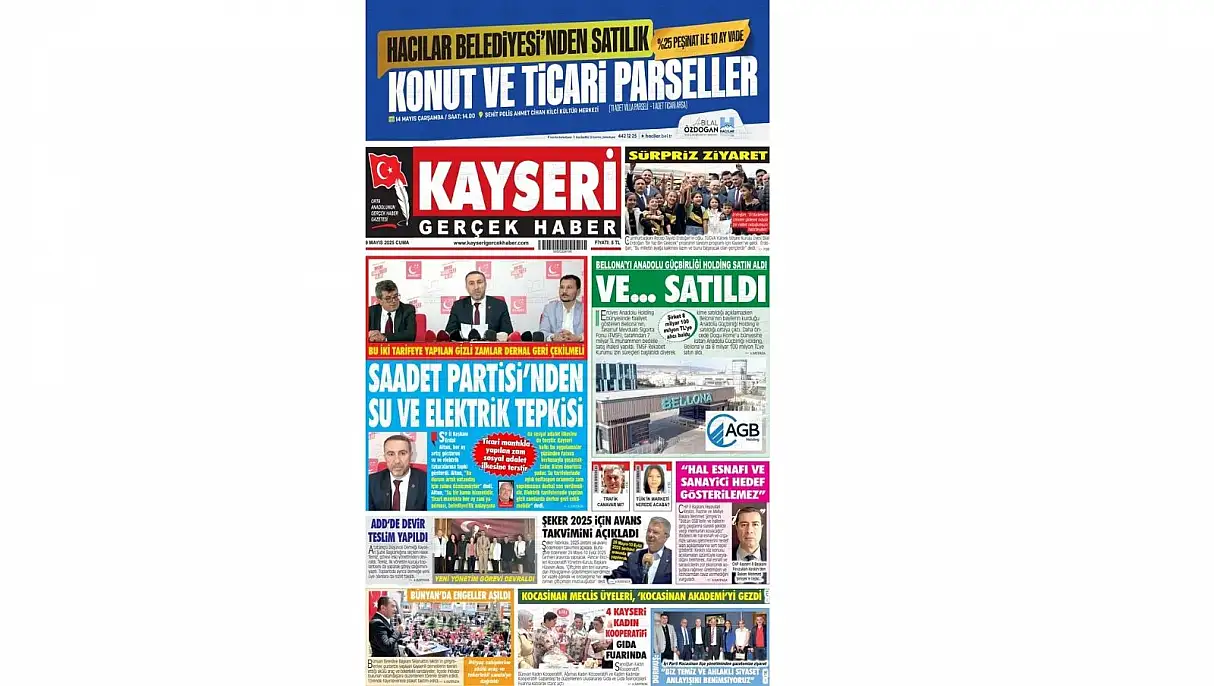 Gerçek Haber’in manşetinde Saadet Partisi Kayseri İl Başkanı Erdal Altun’un düzenlediği basın açıklaması yer aldı. Altun, su ve elektrik faturalarına tepki tepki gösterdi. Su bir kamu hizmetidir diyen Altun’un ‘Ticari bir mantıkla her ay zam yapılması belediyecilik anlayışına sosyal adalet ilkesine terstir. Kayseri halkı bu uygulamalar yüzünden fatura korkusu yaşamaktadır’ ifadeleri ön plana çıkarıldı.