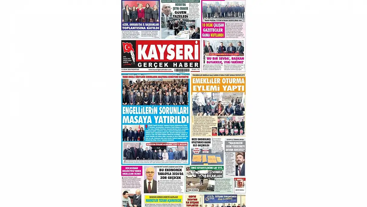 Kayseri gazetelerinde 12 Ocak Pazartesi günü hangi başlıklar gündem oldu?