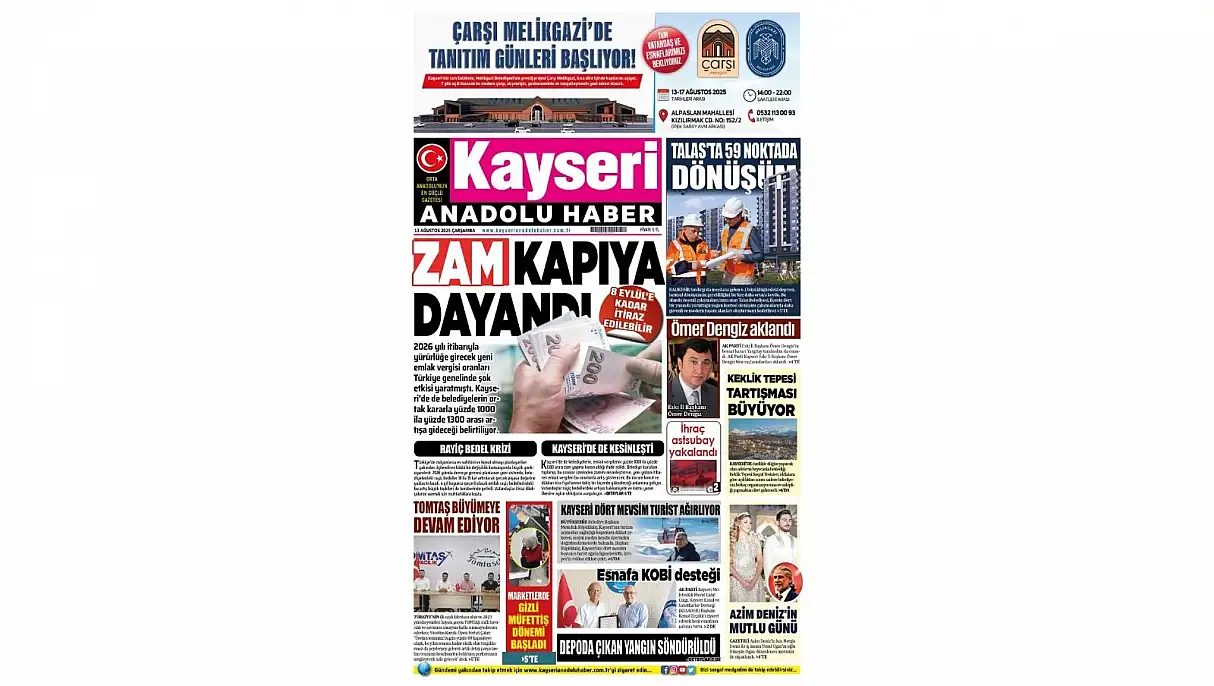 ‘Zam kapıya dayandı’ diyen Anadolu Haber, 2026 yılı itibarıyla yürürlüğe girecek olan yeni emlak vergisi oranlarını manşetine taşıdı. Kayseri’de belediyelerin ortak kararı ile yüzde 1000 ila yüzde 1300 arasında artış yaşanacağı belirtildi.