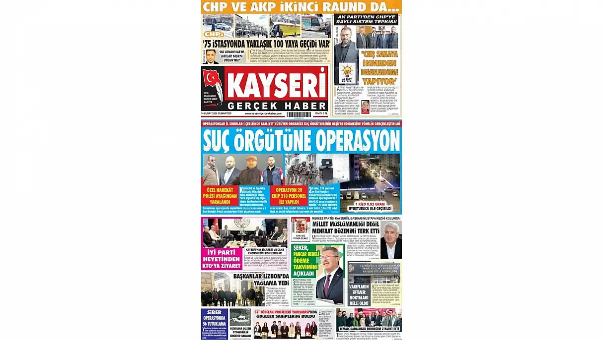- Kayseri Gazetelerinde 14 Şubat Cumartesi günü manşet tek: Suç örgütüne büyük baskın!