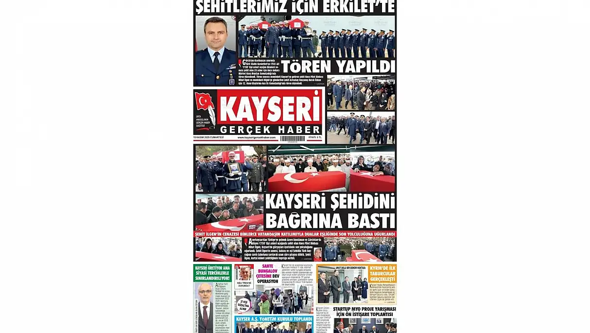 Kayseri yerel basında 15 Kasım Cumartesi günü gazetelerde yer alan manşetleri sizin için derledik. Kayseri Anadolu Haber, Kayseri Gerçek Haber ve Gazete Kayseri tek bir manşete odaklandı: 'Yürek yakan veda'... Detaylar Kayseri Anadolu Haber'de…