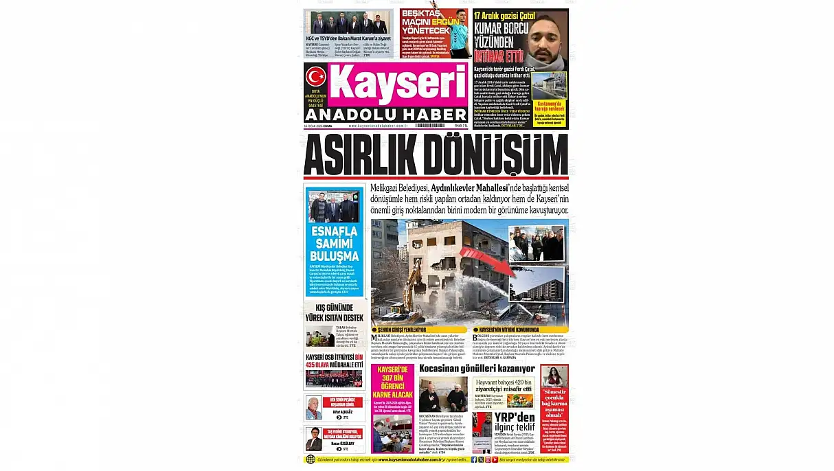 Kayseri gazetelerinde 16 Ocak Cuma günü hangi başlıklar gündem oldu?