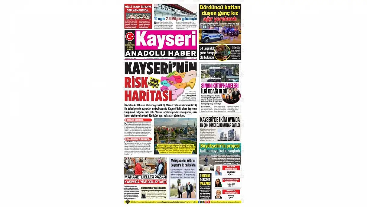 Anadolu Haber manşetinde ‘Kayseri’nin Risk Haritası’ başlığı ile olası depremde Kayseri’nin riskli bölgelerine dikkat çekti. İl Afet ve Acil Durum Müdürlüğü (AFAD), Maden Tetkik ve Arama (MTA) ile belediyelerin raporları doğrultusunda Kayseri’de olası depreme karşı riskli bölgeler belli oldu. Veriler incelendiğinde zemin yapısı, eski konut stoğu ve kentsel dönüşüm aynı noktaları gösteriyor. Belirlenen risk listesinin başında, Argıncık, Fevzi Çakmak, Yeni Mahalle, Sahabiye çevresi, Oruçreis, Ahievran, Yunus Emre, Kazım Karabekir, Yıldırım Beyazıt ve Battalgazi mahalleleri yer alıyor.