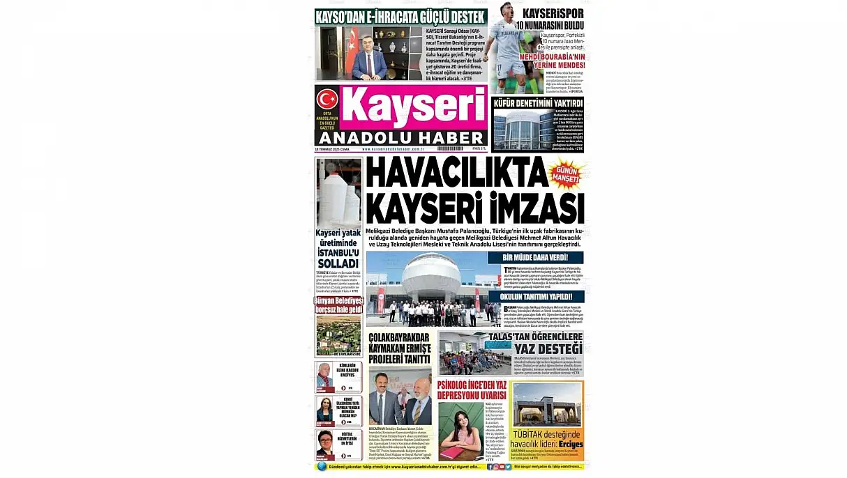 Kayseri Gazetelerinde 18 Temmuz Cuma günü manşet tek: Havacılık Lisesi!
