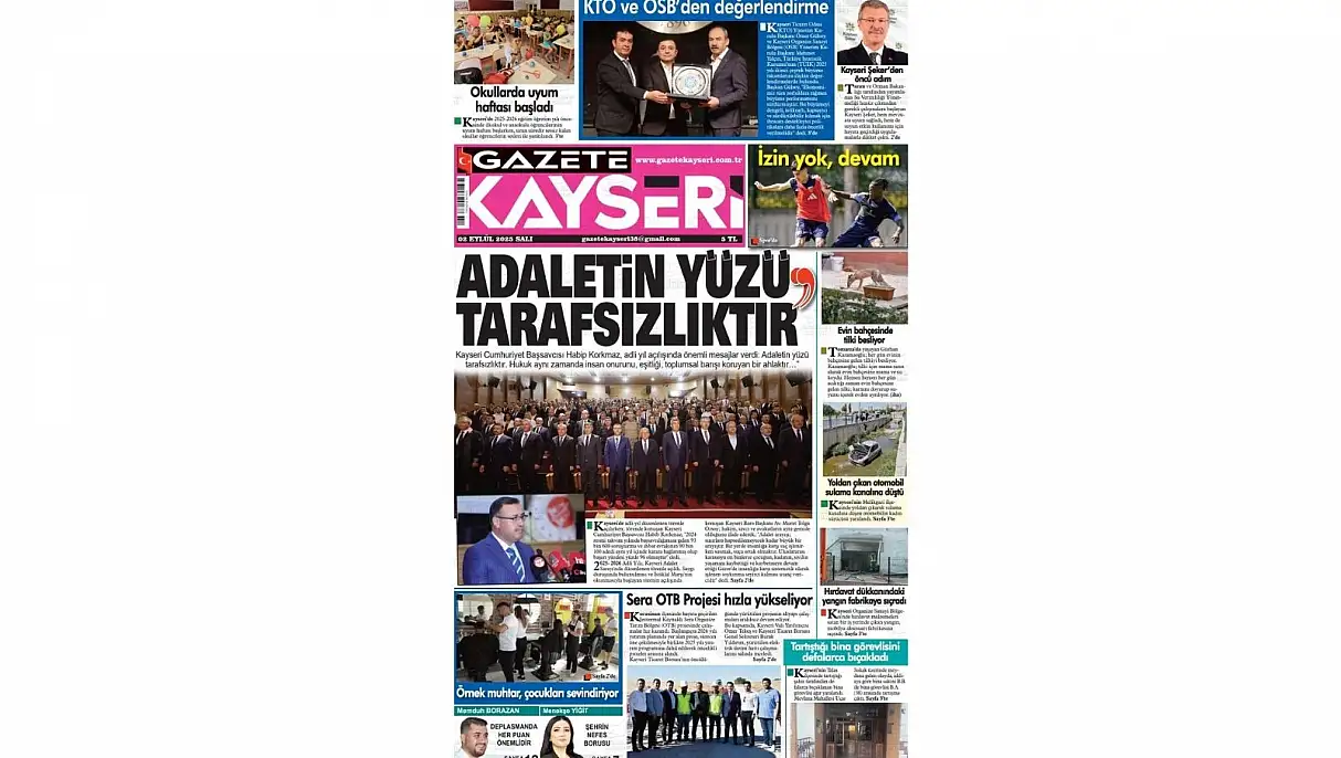 Gazete Kayseri ‘Adaletin yüzü tarafsızlıktır’ ifadeleri ile adli yıl açılışına manşetinde yer verdi. Kayseri Cumhuriyet Başsavcısı Habip Korkmaz’ın önemli mesajlarına dikkat Çeken Gazete Kayseri Korkmaz’ın ‘Adaletin yüzü tarafsızlıktır. Hukuk aynı zamanda insan onurunu, eşitliği, toplumsal barışı koruyan bir ahlaktır’ ifadeleri ön plana çıkarıldı.